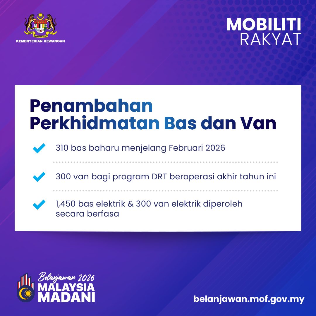 Kerajaan memperkukuh sistem pengangkutan awam dan keselamatan jalan raya melalui pelbagai inisiatif, antaranya perkhidmatan bas baharu, laluan udara luar bandar, pas MyRailLife percuma, sistem trafik pintar serta insentif tukar kenderaan lama bagi perjalanan yang lebih selamat dan efisien.